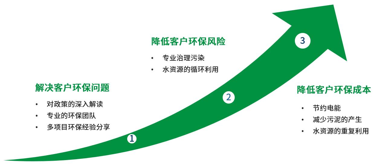 公司專注于各種高難度工業(yè)廢水處理、噴房循環(huán)水處理、冷卻循環(huán)水處理、純水制備、固廢及危廢減量化、廢水資源化利用等。提供現(xiàn)場運營服務(wù)、專用化學(xué)品管理、環(huán)保技術(shù)咨詢等相關(guān)的一體化解決方案和服務(wù),旨在為客戶解決各項環(huán)保難題,并成為客戶忠實的戰(zhàn)略合作伙伴。